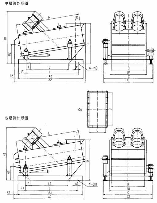 多層直線振動篩的驅動力是雙振動電機,依靠振直線振動篩可單層或多層使用,層數可達到五層