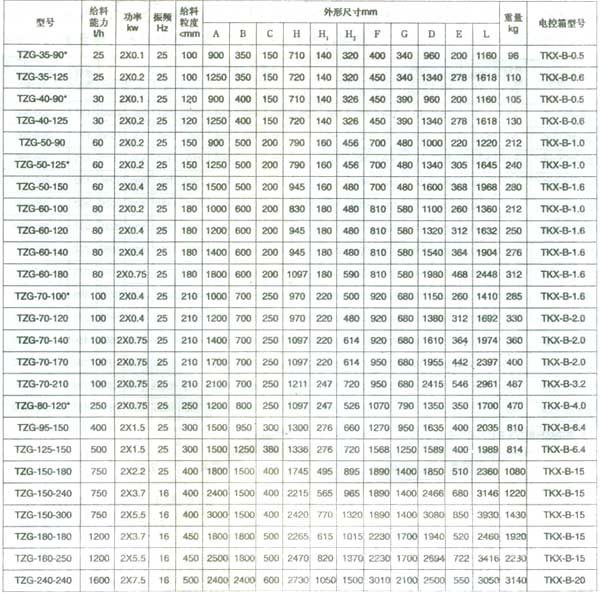 TZG系列給料機(jī)兩臺振動電機(jī)的電源為三相380V,50Hz。