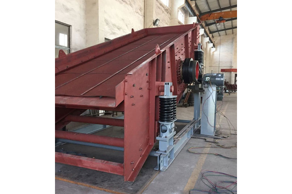 香蕉篩主要由篩箱、篩網(wǎng)、激振器、減振彈簧和下座架等組成。香蕉篩是由電動機和激振器作為振動源,激振器主要是由偏心軸、皮帶輪、軸承及軸承座等組成,激振器安裝在篩箱側板上,并由電動機通過三角皮帶或軟連接與其相連,